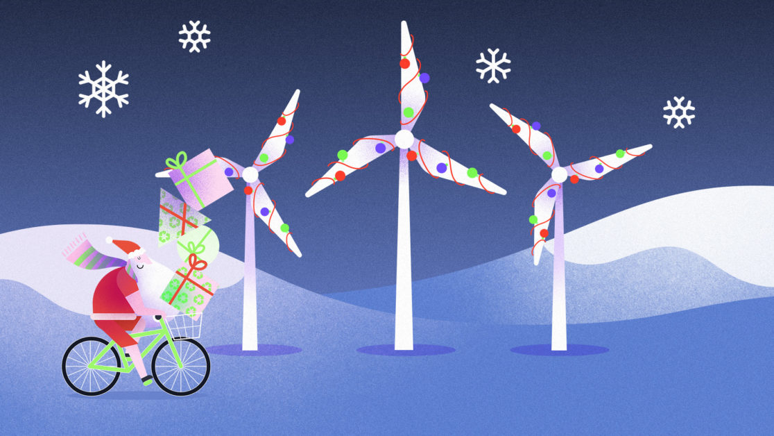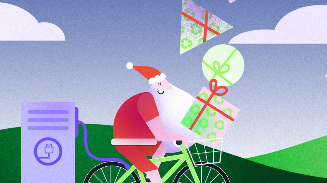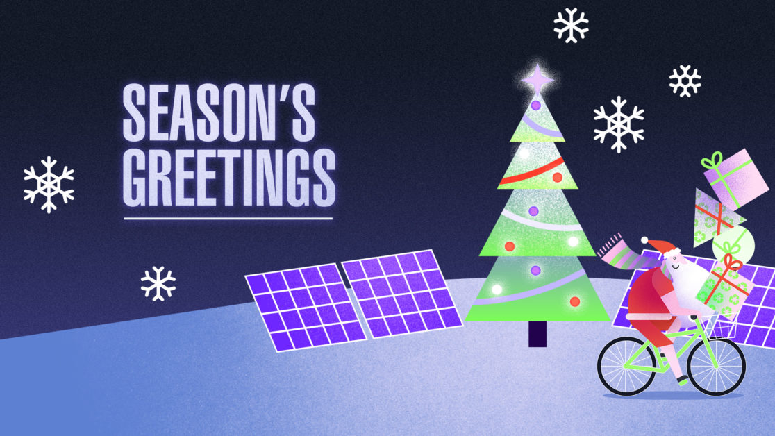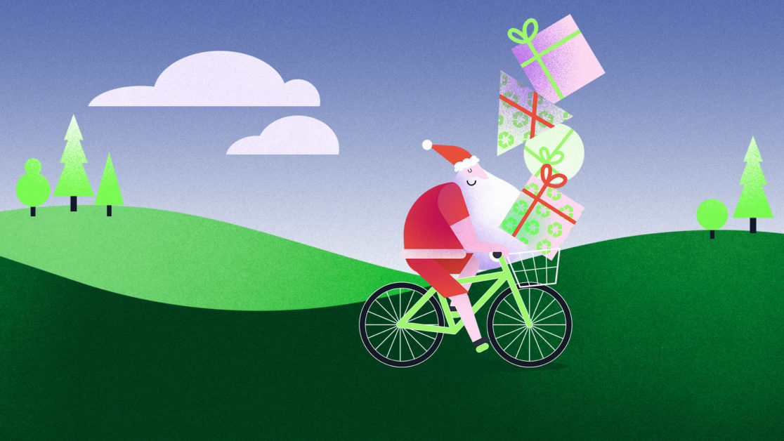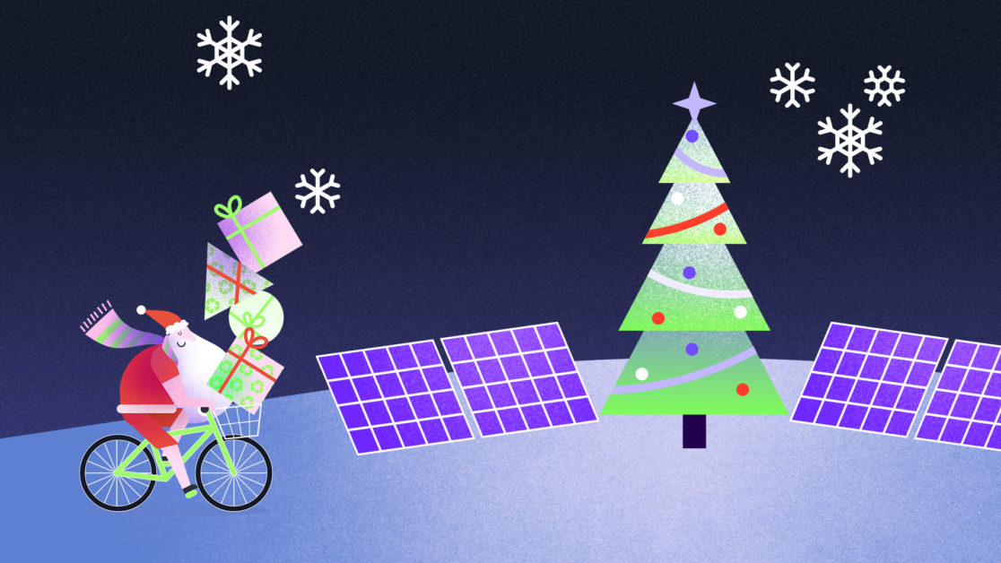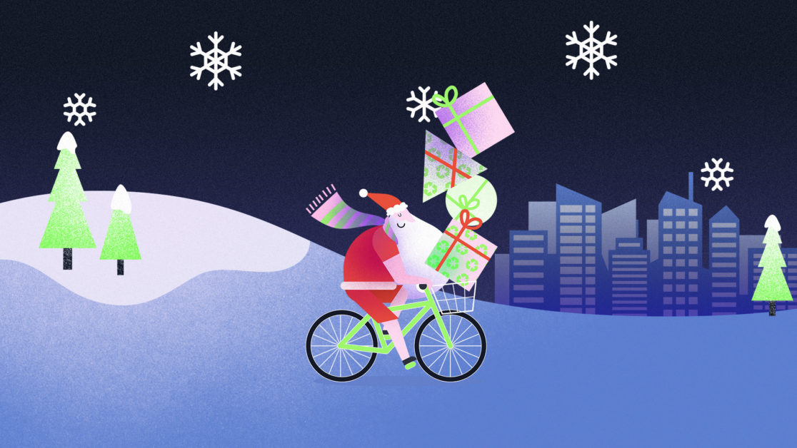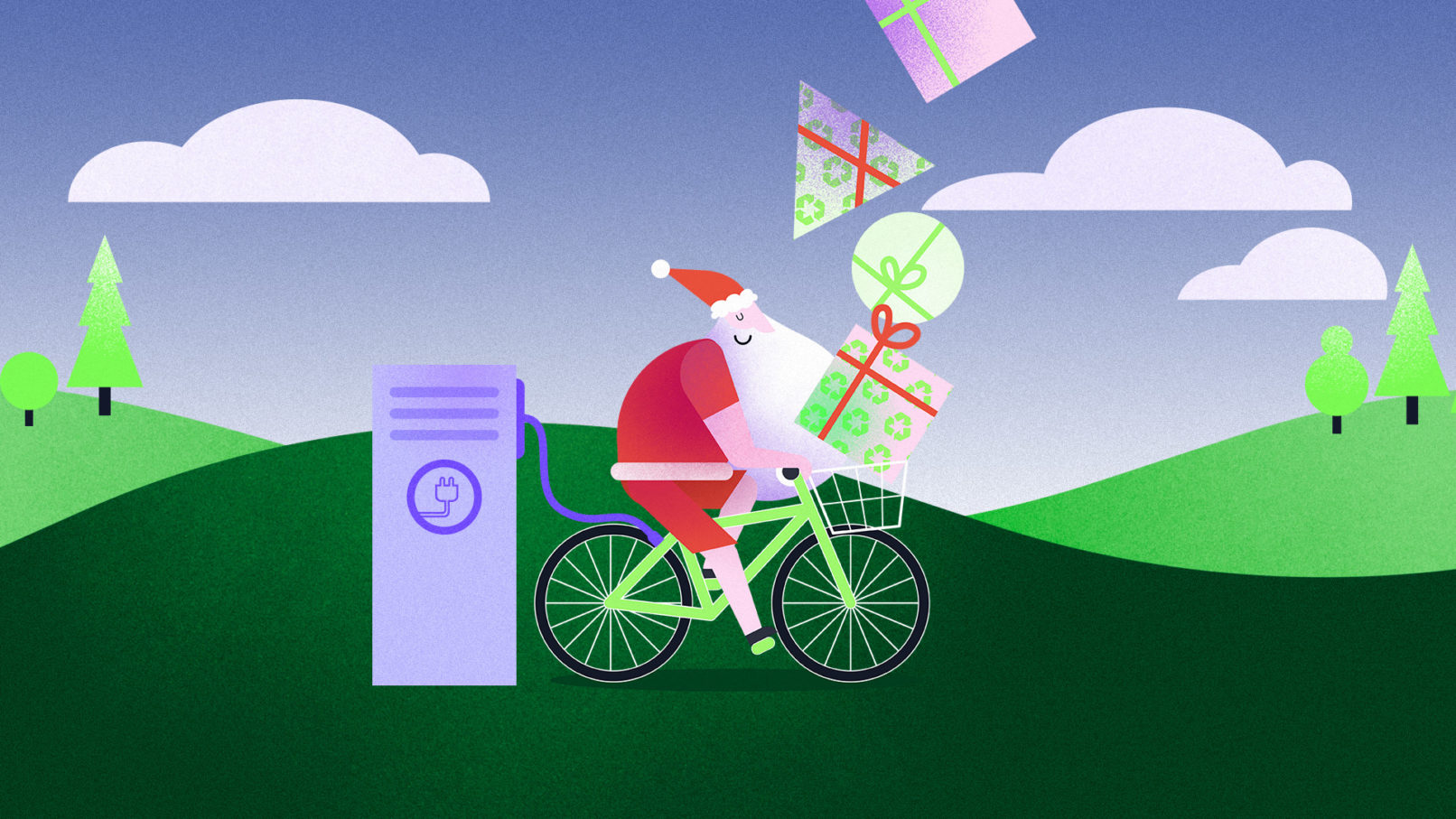 Styleframes and storyboard for Goodman for an e-card showing Santa on his magic electric bike through a variety of sustainable Christmas scenes – a fun, sustainable twist on traditional Christmas imagery.