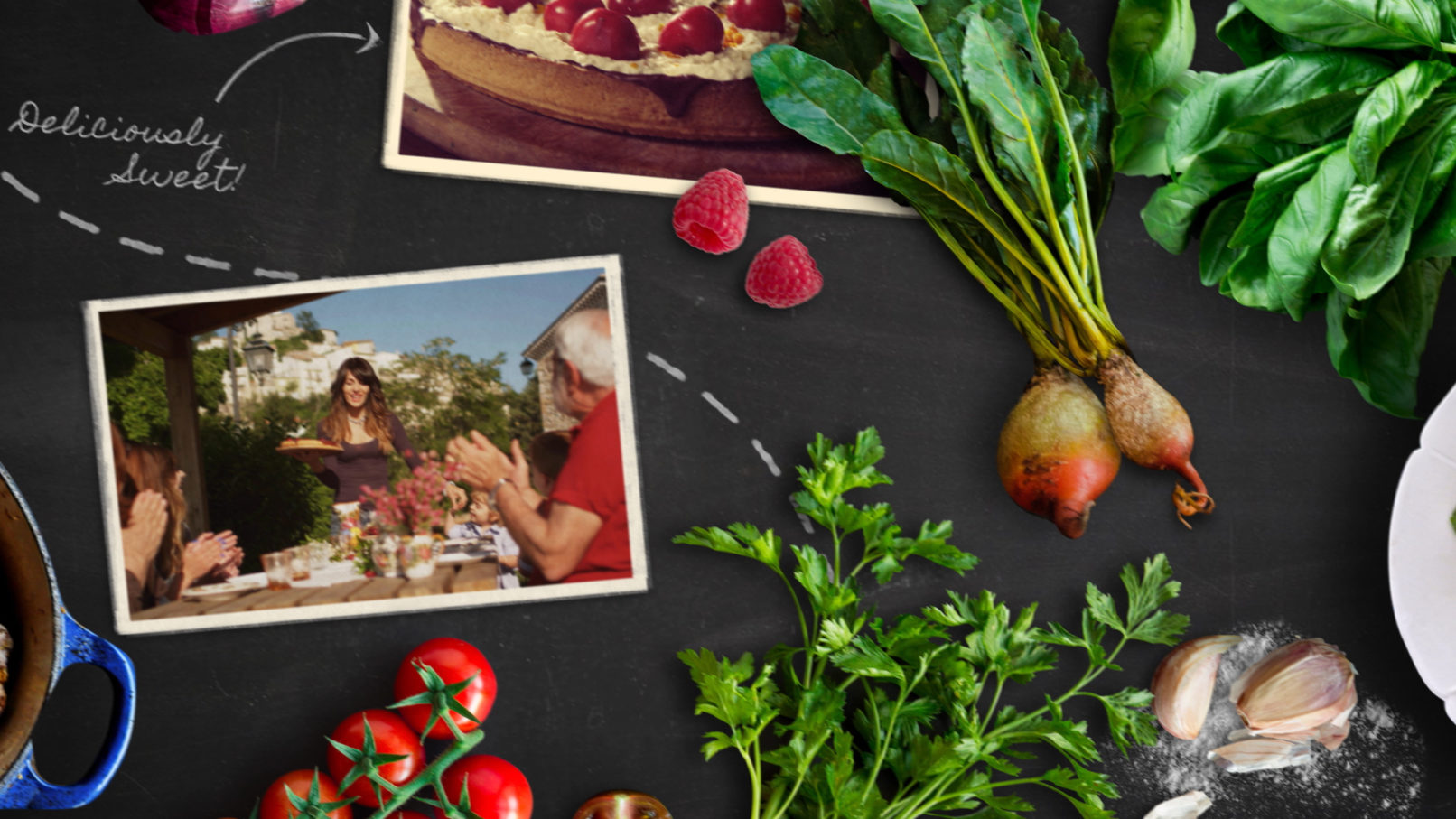 The brief was to create an opening title filled with ingredients and dishes from the show. I photographed the vegetables and composited them together with photographs from Silvia’s cookbook to create a vibrant introduction to Silvia’s show.